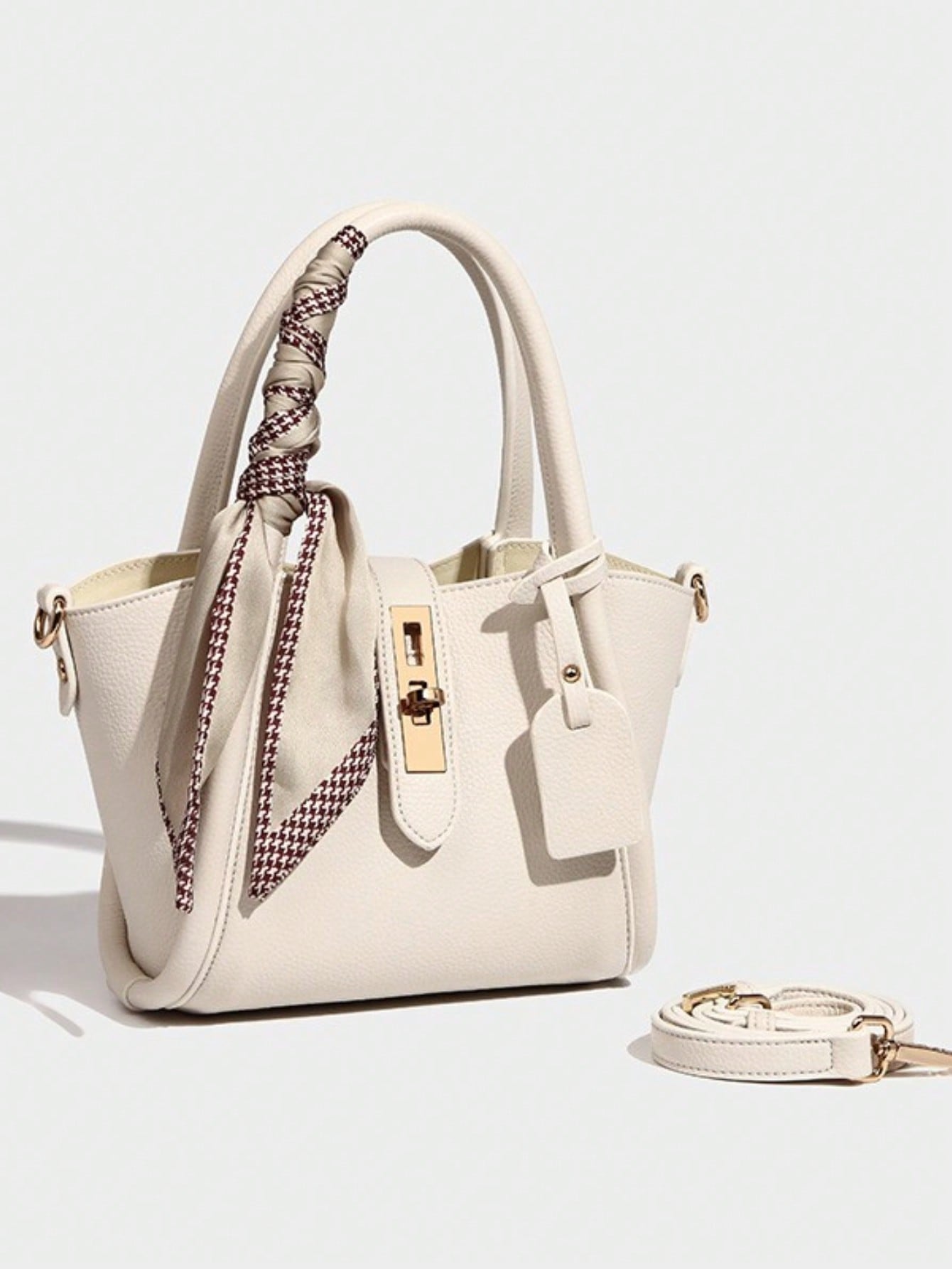 Barabum Mini Square Bag Twilly Scarf Decor Zipper Double Handle